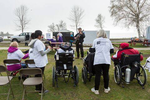 This will mean that, as I continue to post in 2019 and beyond, you will have to scroll down to find 2018. My paid work this year included Crossing Guard, Standardized Patient at the Northern Ontario Medical School (c. once a month Sept. - May), Sexton (caretaker) for Gathering Table Anglican Church, and Music Care at Pioneer Ridge Home (twice a month, and occasionally with an individual in his home). As well, I have resumed accompanying the Pope John Paul II School Choir for masses etc. Other occasional paid gigs include modeling for figure artists, and backstage work as a Dresser for touring shows at the TB Community Auditorium. I continue to sing as a volunteer at Pinewood Court and Pioneer Ridge, as well as every second week at St. Thomas Anglican's Community Meal. See the music section below for other gigs, such as open mics. I am now the Past President of Cambrian Players, and my theatre involvement is described below, including many Cambrian Improv shows. My volunteer camp work is described below as well. I also belong to the Square Book Club, which meets monthly (approximately), which includes Keri, Tamara, Anne, Natalie, Katrina, and Jocelyn. (Sometimes we call it "Food Club".)