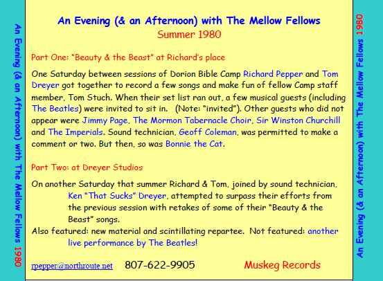 Seven Answers of Sunday School, The Gossip Song, and '69 - '74.